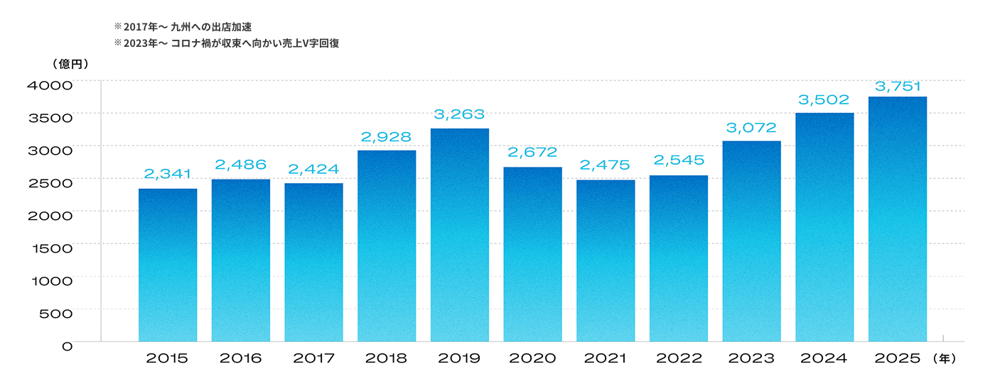 アミューズメント事業を軸にフィットネス・温浴・飲食など多彩な事業を展開し、その規模は約3,800億円にのぼります。これからは、各事業を俯瞰しながらシナジーを生み出し、既存の事業に加え、より多角化した事業の拡大を目指しています。