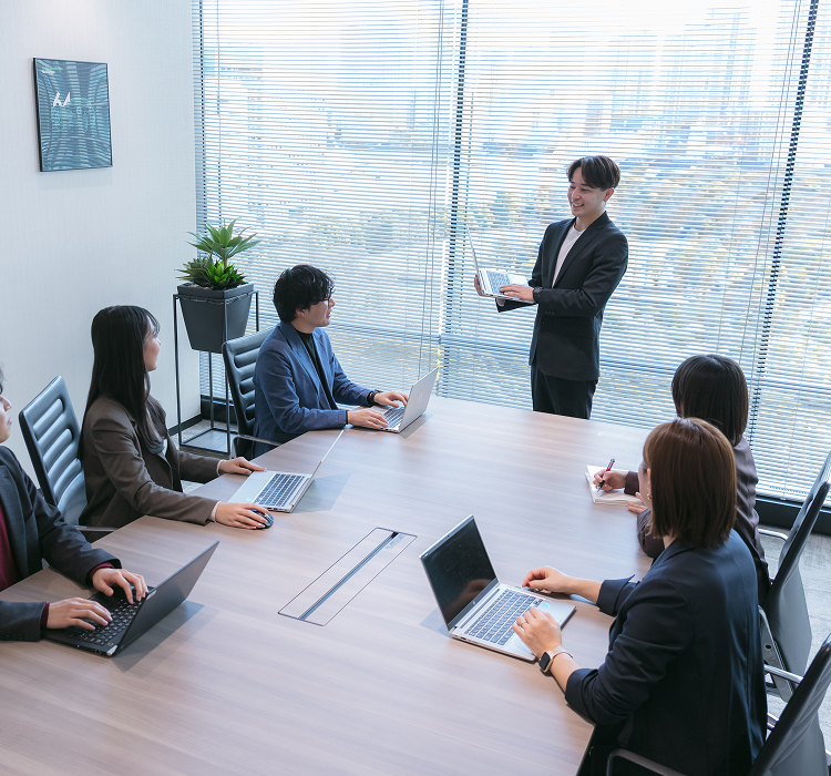 社長・役員直轄のプロジェクトに参画し、事業・組織・人財といった経営の中核テーマを、実務を通じて学びながら推進します